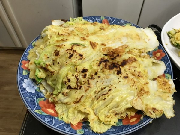 막걸리와 함께 먹을 배추전을 부치고, 이제 잔칫상을 차립니다.